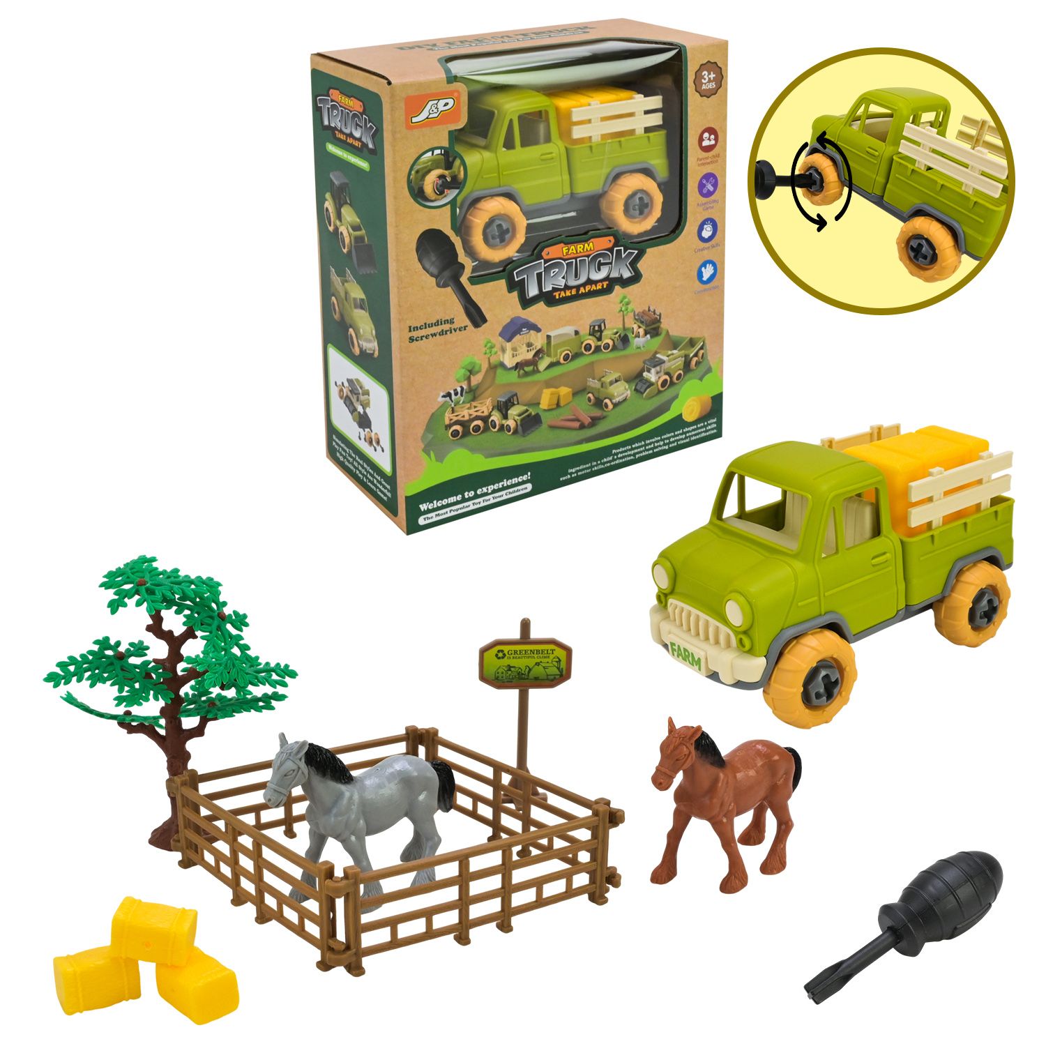 Дитячий фермерський набір — це цікавий маленький світ ферми, де дитина облаштовує власний ігровий простір! Такий набір стане чудовим подарунком для маленьких дослідників і подарує години захопливої гри у власне фермерське господарство. Комплектація: • Вантажівка; • Декоративні елементи: паркан, фігурка дерева, фігурки тварин (2 шт), вказівний знак, сіно; • Викрутка та болтики. Особливості: • Реалістичний та деталізований дизайн робить його ще цікавішим і залучає до гри. • Декоративні елементи: паркан, кіні та навіть сіно, створюють атмосферу справжнього сільського життя, яке можна облаштовувати за власним бажанням.і • Вантажівка має рухомі колеса, завдяки яким його можна катати по будь-якій поверхні. • Особливістю цього ігрового набору є можливість знімати колеса за допомогою болтиків і викрутки, а також розбирати корпус. • Виготовлений з якісного матеріалу, які забезпечують довгу та безпечну гру. Розвиток: розвиває у дітей уважність, логічне мислення, дрібну моторику та інтерес до світу техніки й фермерського життя. Упаковка: коробка Розміри: Розмір упаковки: 18,8х8,8х22,5 см Розмір іграшки: 14х7,5х7 см