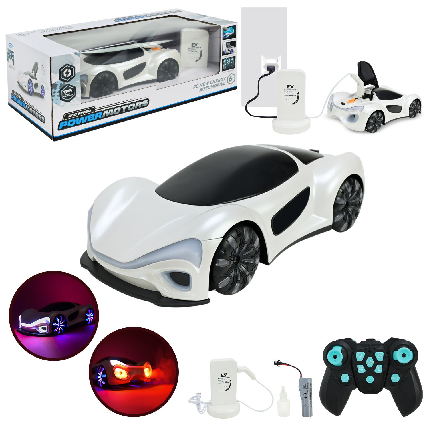 • Підзарядка машинки від зарядної станції, яка підключається у електромережу — додає реалістичності.