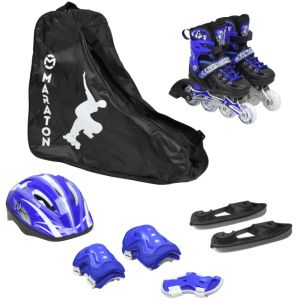 Combo Ice - набор роликовых коньков с комплектом защиты и шлемом для безопасного катания и дополнительно - лезвия для катания на льду! С Combo Ice можно кататься круглый год! Combo Ice подойдут как новичкам, так и продвинутым пользователям. Набор состоит из: роликов, комплекта защиты (налокотники, наколенники, защита запястий), защитного шлема и лезвий для катаний на льду. Алюминиевая рама. Подшипник: ABEC-7 - позволяет быстро развивать и контролировать скорость Колеса: Полиуретан. Система раздвижения: автомат. Механизм застегивания: шнурки, велкро-липучка, бакля пластиковая с клипсой.